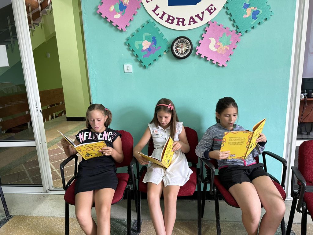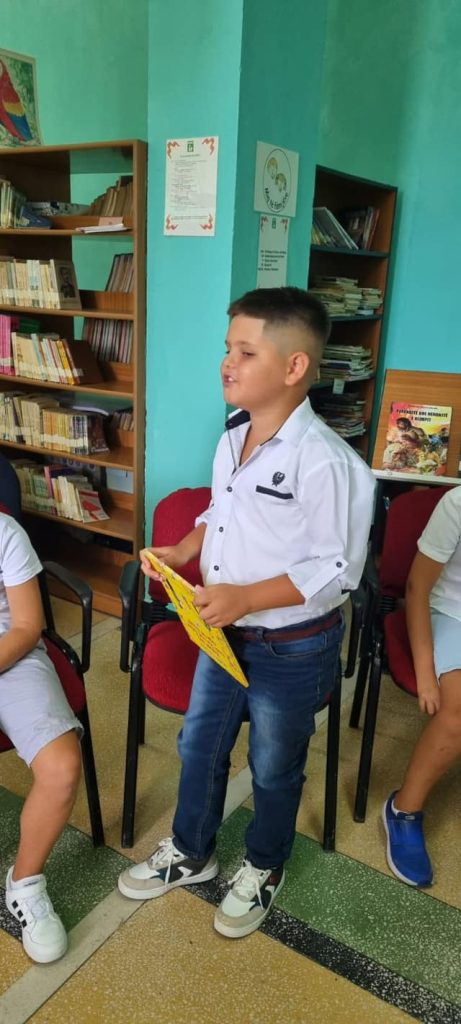 Takuam aty femije te mrekullueshem, kureshtare dhe te etur per te lexuar, nga dy shkolla, Gjok Shqiptari, dhe M.E.Minarolli, te shoqeruar nga mesueset e tyre, Denada Pere, Kozeta Peshkatari, Lindita Olldashi dhe sigurisht nga mikpritesja, Klodiana Prifti, specialistja e bibliotekes te cilen, per pasionin per punen me librin, mund ta kene zili edhe bibliotekat e qyteteve te medha.